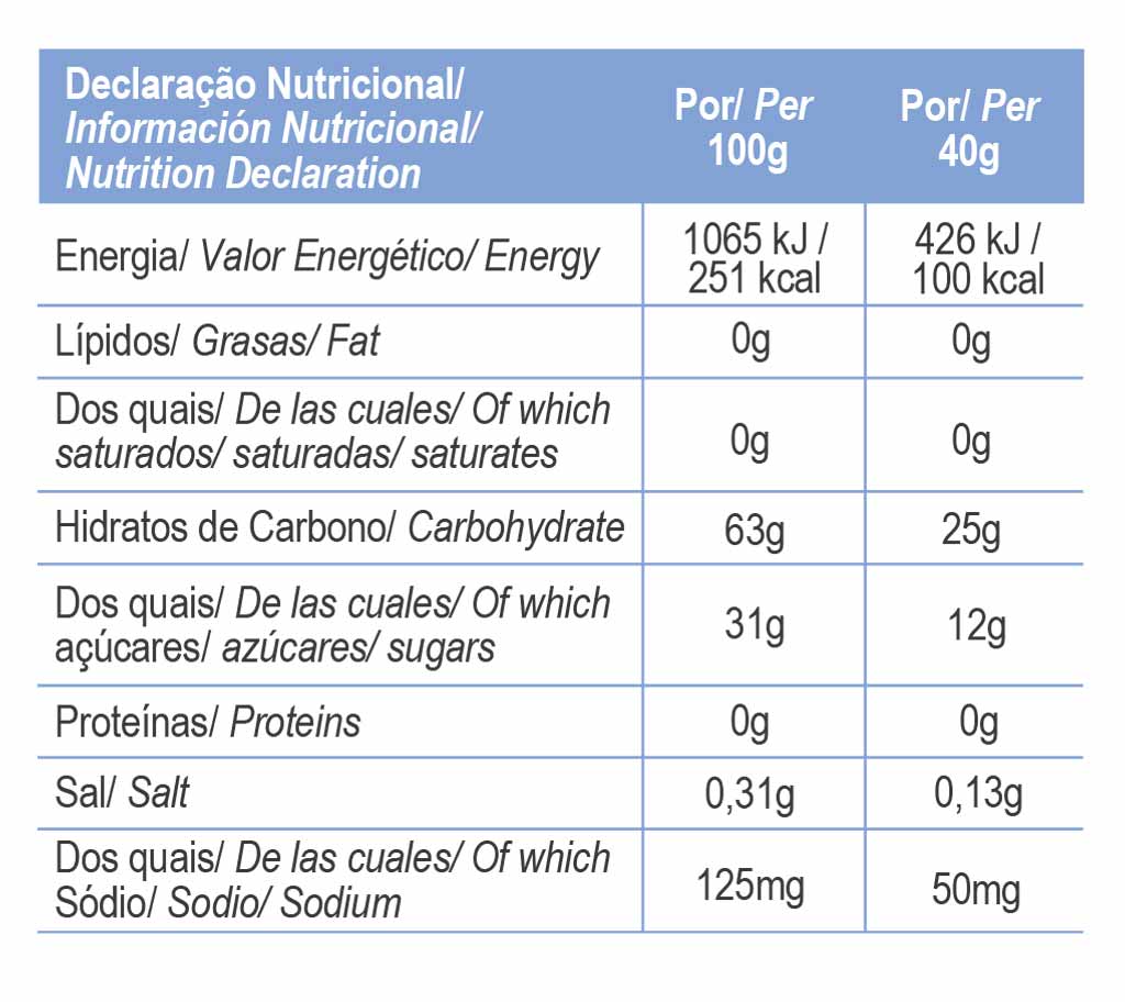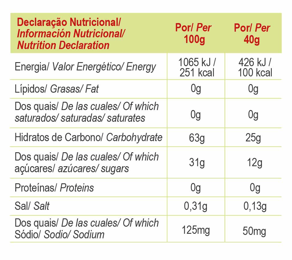Aufgrund seiner Zusammensetzung mit schnell absorbierbaren Kohlenhydraten und 50 mg Natrium fungiert Energy Gel als wesentlicher Bestandteil des Ausdauertrainings, begünstigt die Verzögerung der Ermüdung und erhält die Leistungsfähigkeit über einen längeren Zeitraum.