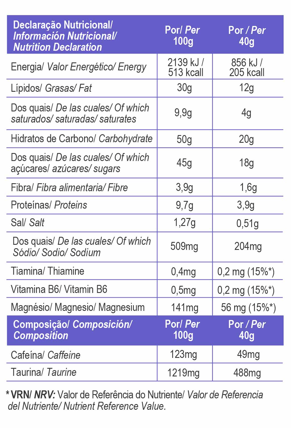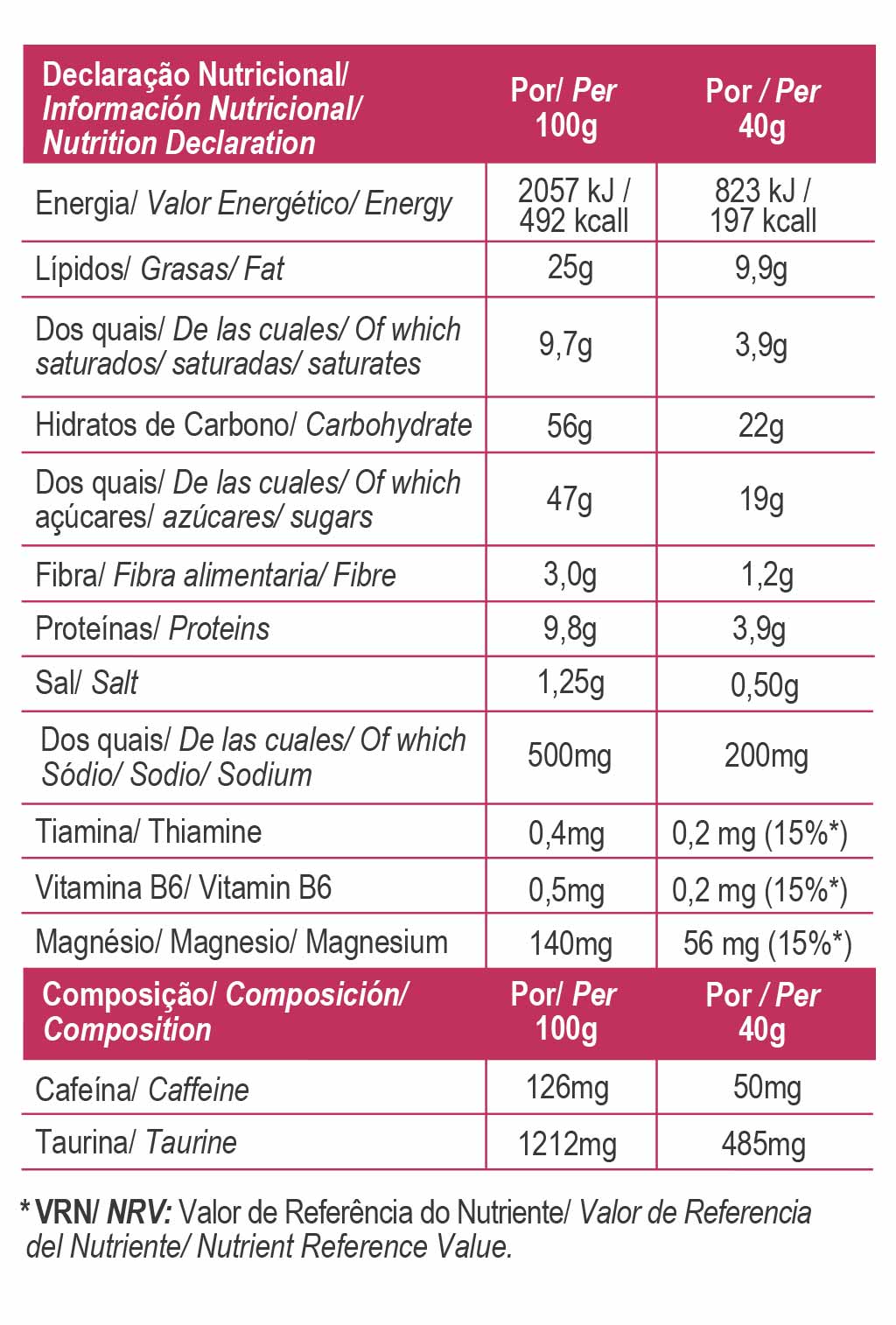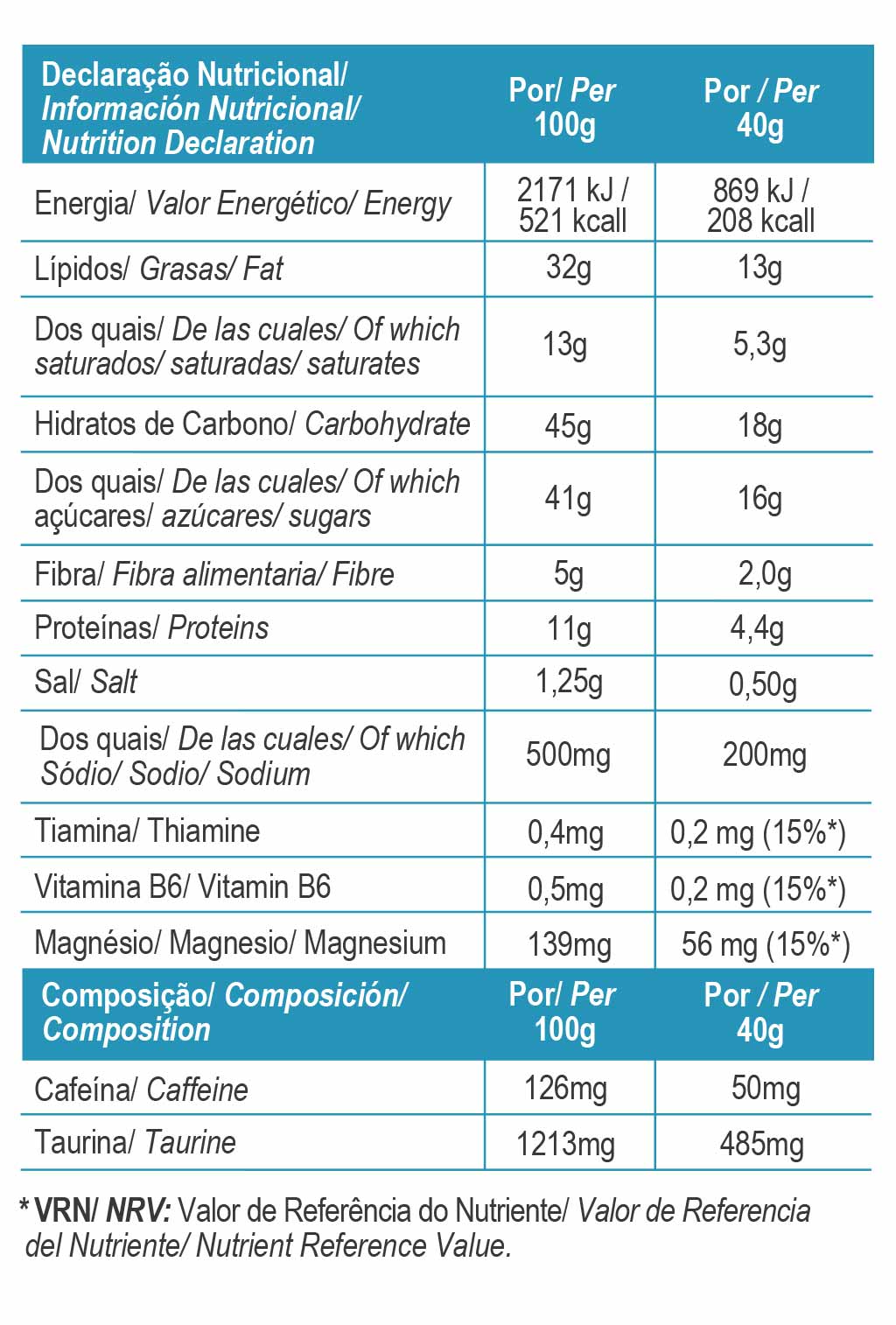 Sie enthalten außerdem Taurin und Koffein, was eine effektivere Muskelkontraktion, erhöhte Konzentration und eine verzögerte Ermüdung ermöglicht. Darüber hinaus bieten sie einen hohen Gehalt an Thiamin und Vitamin B6, was zu einem normalen Energiestoffwechsel und zur Verringerung von Müdigkeit und Erschöpfung beiträgt (Vitamin B6). Bestehend aus Lipiden, Hydraten, Ballaststoffen, Proteinen, Natrium, Thiamin, Vitamin B6, Koffein, Taurin, Glutamin, BCAA… ist der Endurance Salt Bar somit einer der komplettesten Riegel auf dem Markt.